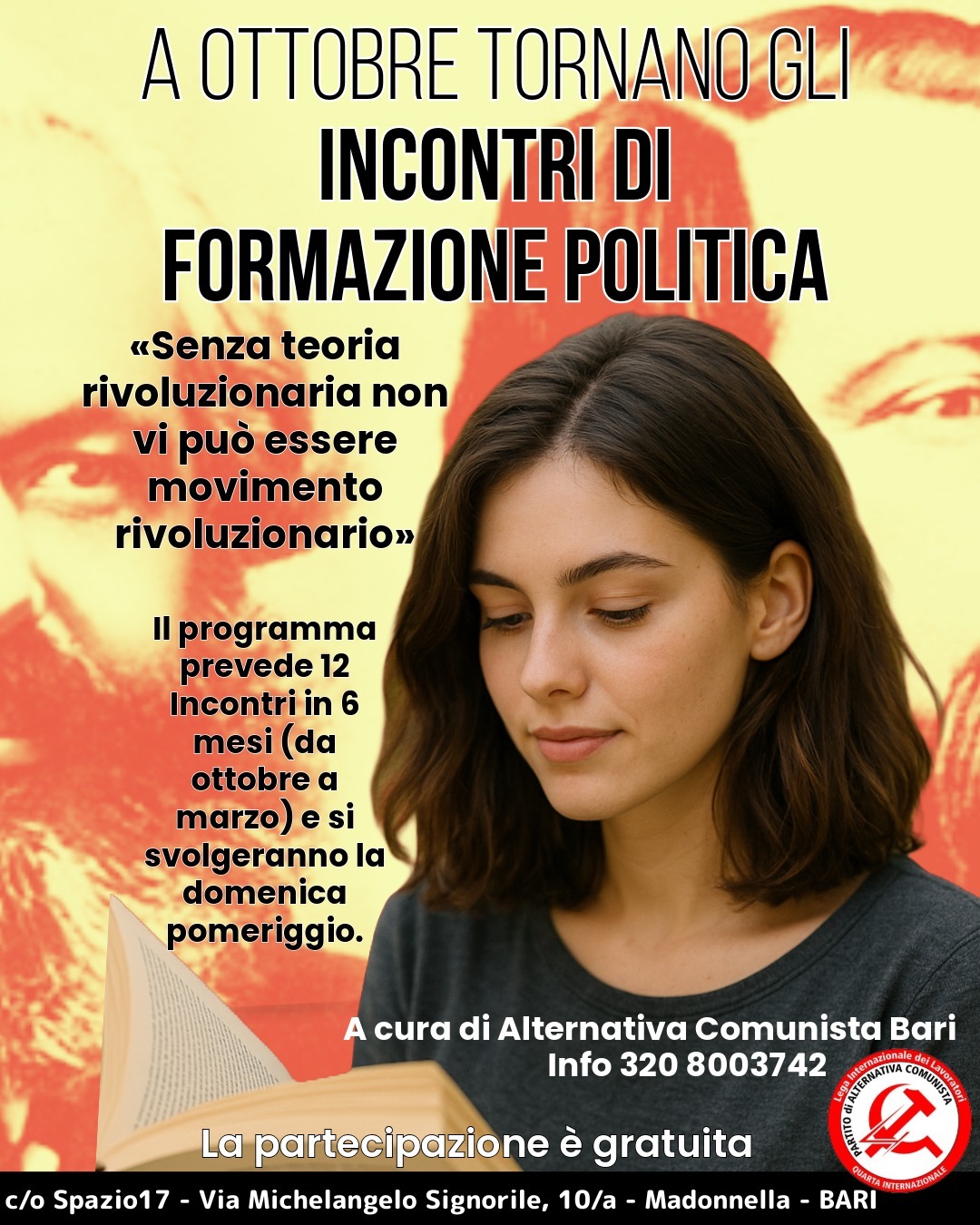 Questo e ciò che crediamo sia necessario fare fin da subito e su ognuno di questi fronti si profonde il nostro incessante impegno come Partito di alternativa comunista, sezione italiana della Lega internazionale dei lavoratori - Quarta internazionale. Il partito che invitiamo a conoscere e a costruire insieme a noi.
