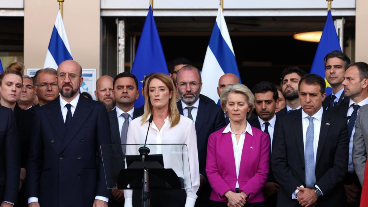 Anche l'italiana Meloni, Macron e il britannico Rishi Sunak si sono recati in visita... La Presidente della Commissione europea Von der Leyen e il Presidente del Parlamento europeo Metsola si sono affrettati a dare il loro sostegno incondizionato a Netanyahu. Von der Leyen non ha nemmeno menzionato il «rispetto del diritto umanitario». Nel frattempo, il suo commissario Várhelyi è arrivato persino a dichiarare che la Commissione avrebbe sospeso unilateralmente tutti gli aiuti umanitari ai palestinesi.