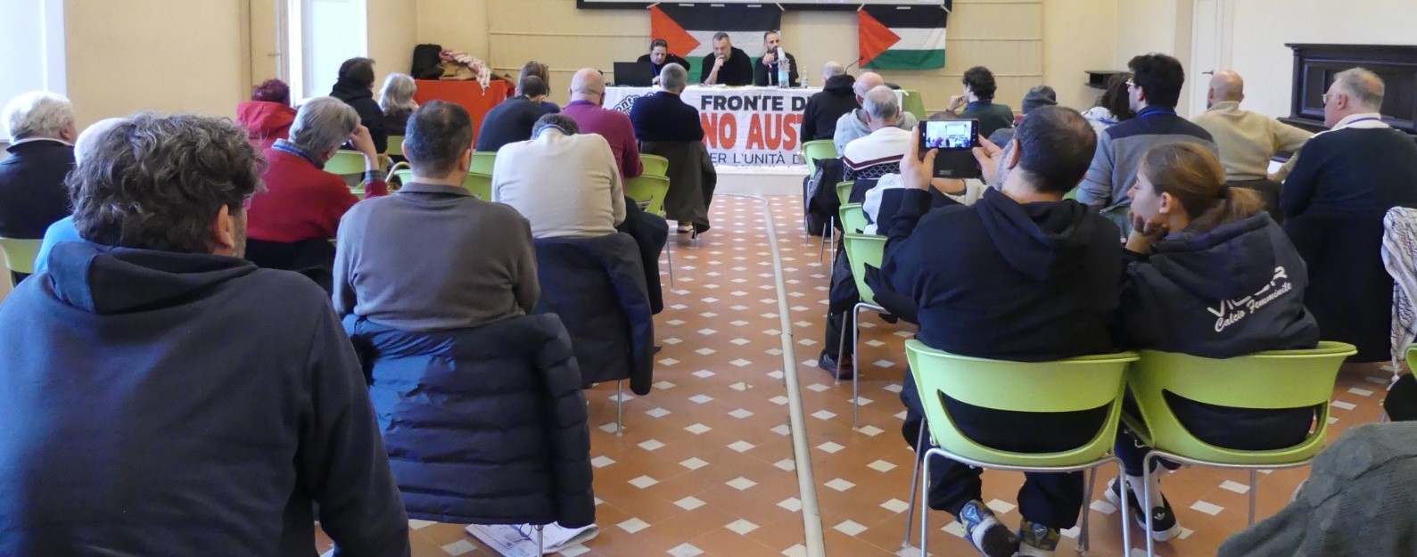 Sabato 1° febbraio a Firenze si è svolta la VII Conferenza nazionale del Fronte di Lotta No Austerity, un coordinamento nazionale di realtà di lotta che cerca di superare le divisioni tra sigle al fine di creare la massima unità d’azione possibile, con una prospettiva anticapitalistica. L’assemblea ha visto la presenza di numerosi delegati da diverse regioni d’Italia, in gran parte rappresentanti di importanti realtà di lotta e di movimento. Tra queste realtà ricordiamo, in particolare, gli operai della Beko, gli attivisti del movimento a sostegno della Resistenza palestinese (tra cui alcuni compagni palestinesi, i sanitari per Gaza, Firenze per la Palestina), i ricercatori universitari in mobilitazione, gli attivisti dei movimenti di lotta per la casa e quelli antifascisti. Potete leggere il report dettagliato sul sito del Flna a questo indirizzo www.frontedilottanoausterity.org/articoli/7-conferenza-nazionale-del-flna-report-documento-politico-mozioni-approvate/